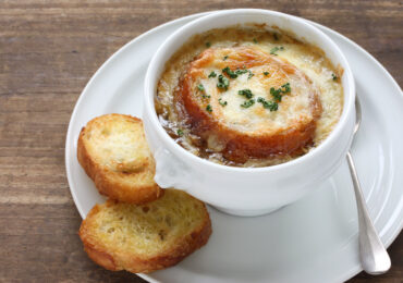 - Cinq minutes avant que la soupe soit prête, faire gratiner les pains baguettes avec le fromage.